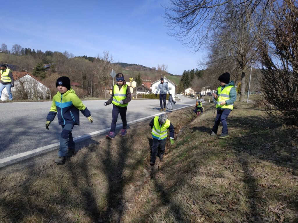 Ausgeschwärmt wurde in alle Richtungen: Amthof, Kindergarten, Bienenhaus, rund um den Kirchaberg, entlang der Bundesstraße von Zell nach Kirchberg und über den alten Sportplatz durch die Riedäckersiedlung zurück zum Rathaus. Besonders die Kinder waren mit Feuereifer dabei – Müll sammeln kann offenbar richtig Spaß machen!