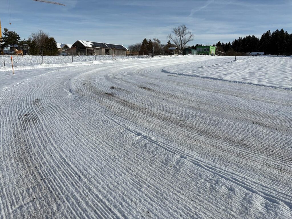 Wiese wurde am 30.11. geglättet. Vorsicht, lose Steine! Keine Diagonalspur möglich.